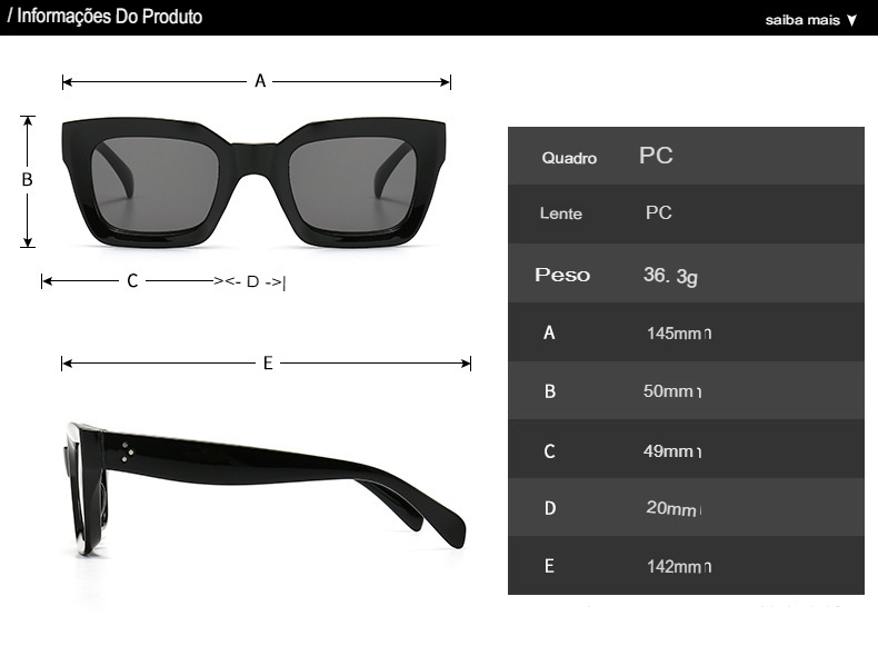Nossos óculos de sol são modernos, atualizados e oferecem o mais alto nível de proteção UVA/UVB. Eles são feitos com materiais resistentes, duráveis e leves para garantir conforto por muitas horas seguidas.
