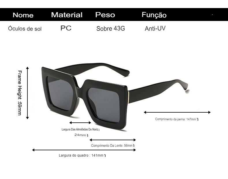Nossos óculos de sol são modernos, atualizados e oferecem o mais alto nível de proteção UVA/UVB. Eles são feitos com materiais resistentes, duráveis e leves para garantir conforto por muitas horas seguidas.