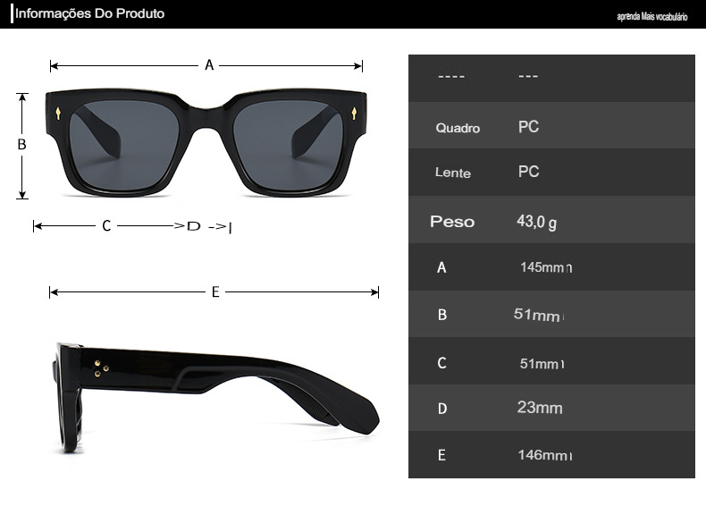 Nossos óculos de sol são modernos, atualizados e oferecem o mais alto nível de proteção UVA/UVB.  Eles são feitos com materiais resistentes, duráveis e leves para garantir conforto por muitas horas seguidas.