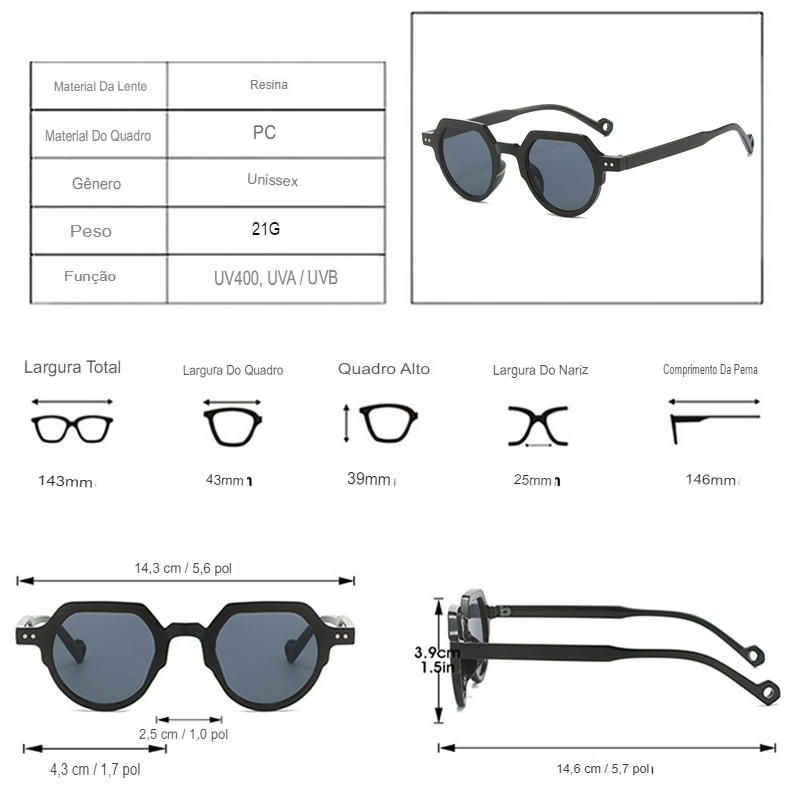 Nossos óculos de sol são modernos, atualizados e oferecem o mais alto nível de proteção UVA/UVB.  Eles são feitos com materiais resistentes, duráveis e leves para garantir conforto por muitas horas seguidas.
