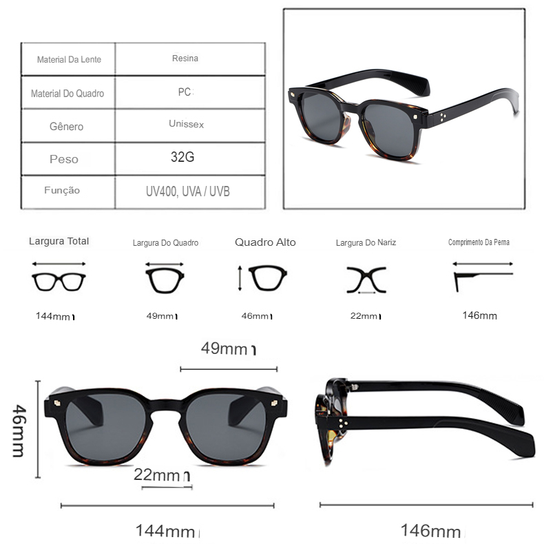 Nossos óculos de sol são modernos, atualizados e oferecem o mais alto nível de proteção UVA/UVB.  Eles são feitos com materiais resistentes, duráveis e leves para garantir conforto por muitas horas seguidas.