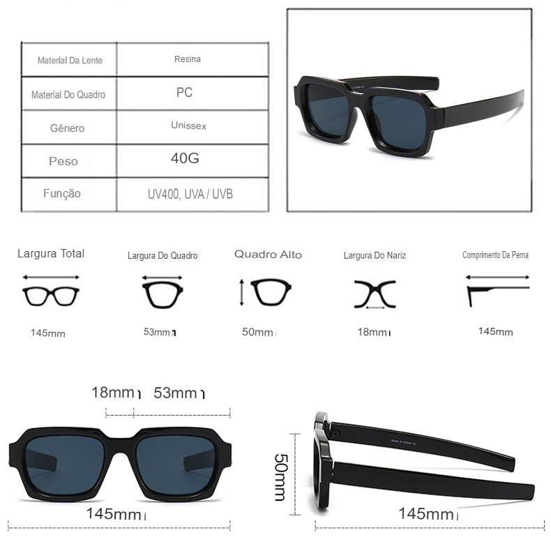 Nossos óculos de sol são modernos, atualizados e oferecem o mais alto nível de proteção UVA/UVB.  Eles são feitos com materiais resistentes, duráveis e leves para garantir conforto por muitas horas seguidas.