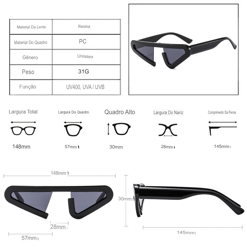 Nossos óculos de sol são modernos, atualizados e oferecem o mais alto nível de proteção UVA/UVB.  Eles são feitos com materiais resistentes, duráveis e leves para garantir conforto por muitas horas seguidas.